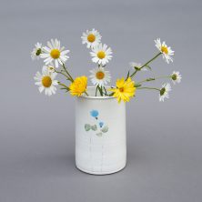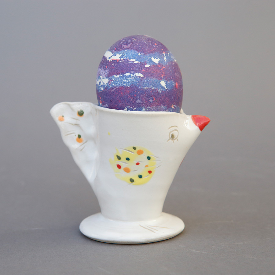 Wir fertigen in unserer kleinen Werkstatt und Atelier Geschirr in Steinzeugqualität. Jedes Stück wird in Handarbeit individuell hergestellt vom rohen Ton bis zum fertigen Produkt. Die meisten Gefäße werden auf der Töpferscheibe gedreht. Andere entstehen durch Aufbautechniken und Verformung. Wir verwenden als Überzug eine Porzellan-Engobe, bevor jedes Stück bemalt, geritzt und gestempelt wird. Es wird bei 1260°C im Elektroofen gebrannt, ist damit dicht und spülmaschinenfest.